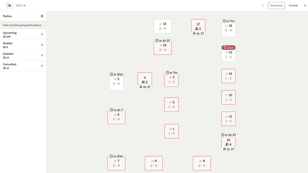 ● Custom booking rules (party size, turn times)
